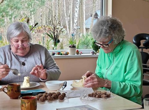 Močiutės Gražina-Viktorija ir Felicija iš sviesto lipdo Velykų avinėlį