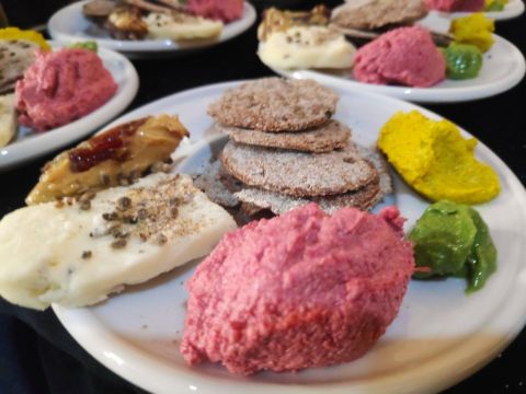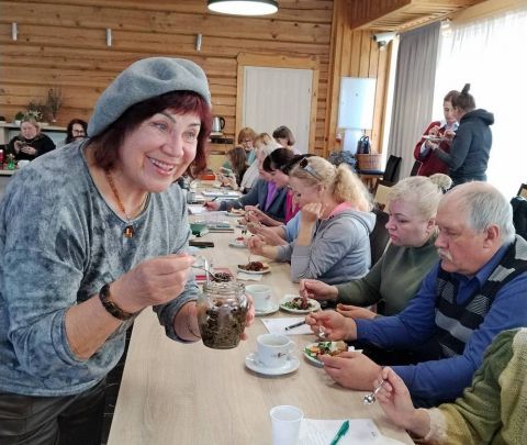 Pietūs (Danutės užtepėlės, trapučiai su pūslėtuoju giuveiniu, Loretos sūris + Kartenos duona, Felicijos pyragas )