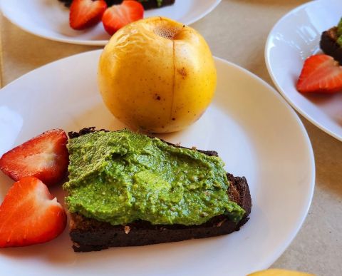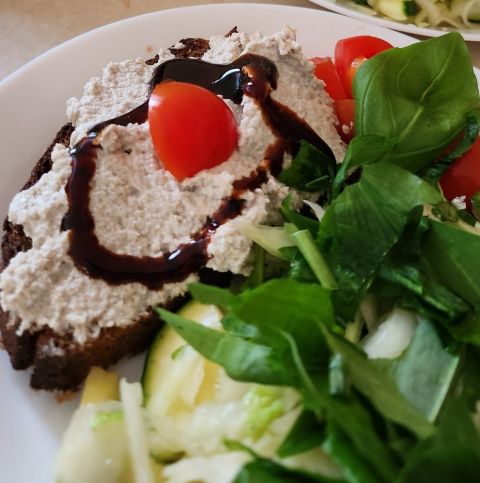 Užkandukas: naminė duona, meškinio česnako užtepėlė, keptas obuolys...