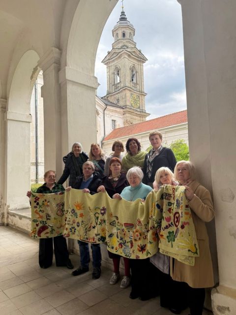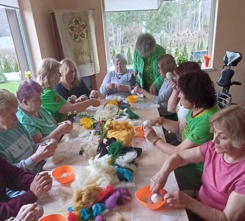 Dailės terapijos mokytoja Felicija veda kojinių dekoravimo edukaciją