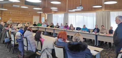 Pietūs (Danutės užtepėlės, trapučiai su pūslėtuoju giuveiniu, Loretos sūris + Kartenos duona, Felicijos pyragas )